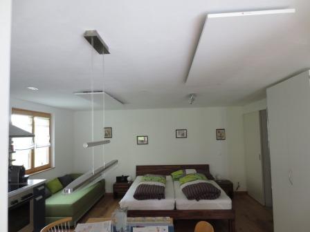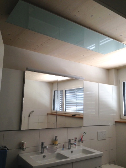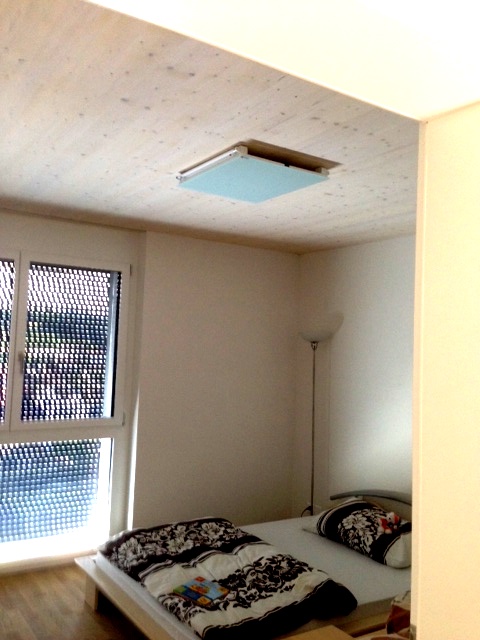 Schlafzimmer: Deckenheizelement R400 Glas weiss mit integrierter Beleuchtung