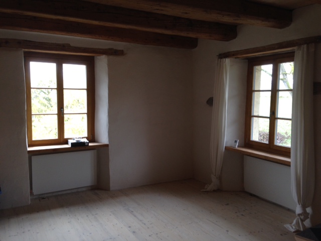 Dank der sehr guten Isolation mit bis zu 80 cm Strohballen (Aussenwände erreichen einen U-Wert bis zu 0.05 W/m2K), konnte die Heizleistung der Redwell Elemente auf bis zu 12W / m3 gesenkt werden.